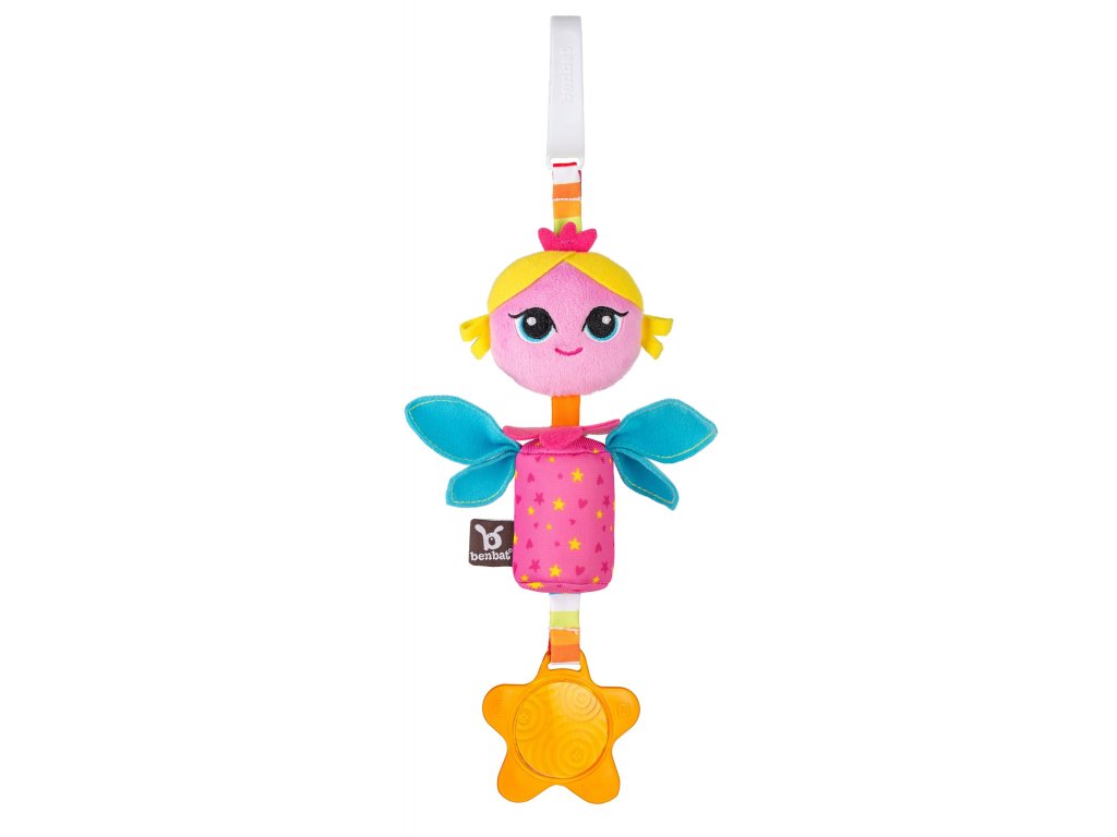 Světlé barvy, roztomilý, plyšový zvířecí kamarád, stuhy a chrastítka budou děti nejen bavit, ale zároveň budou rozvíjet jejich psychomotorické dovednosti. Chrastítko v bříšku plyšového zvířátka učí dítě zaměřit a identifikovat zvuky, pohyblivé části trénují koordinaci “oko - ruka”. Snadno upevnitelný klip ke kočárkům, autosedačkám a dalším zajišťuje, že hračka bude vždy směřovat k dítěti. Plastové části neobsahují BPA. Vhodné od narození.