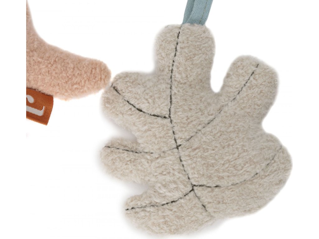 Řetěz na kočárek či autosedačku zabaví vaše dítě na procházkách i cestách autem. Pozornost dítěte upoutají tři zavěšené hračky v podobě dvou dinosaurů a lístku.