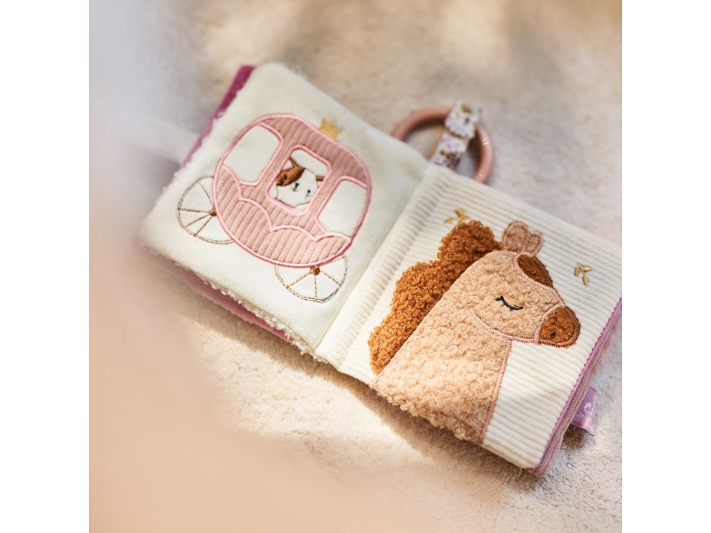 Roztomilá textilní knížka s pohádkovými motivy a zvířátky je ideální první knížkou pro vaše miminko. Je plná barev, textur a zvuků, které vaše dítě zabaví a zároveň podpoří rozvoj jeho smyslů i motorických dovedností.