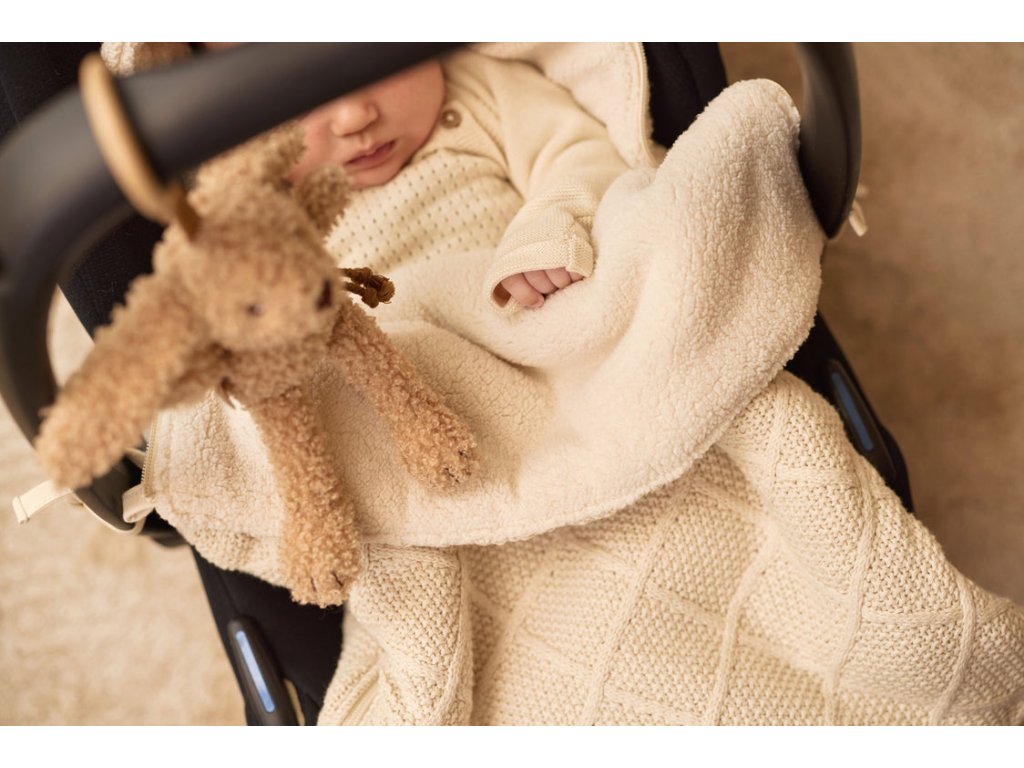 Roztomilý králíček z měkkého buklé materiálu je ideální pro zavěšení na autosedačku či kočárek. Šusticí uši a šňůrky s uzlíky lákají ke zkoumání a pomáhají déle udržet pozornost dítěte.