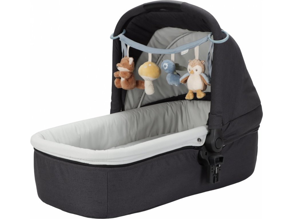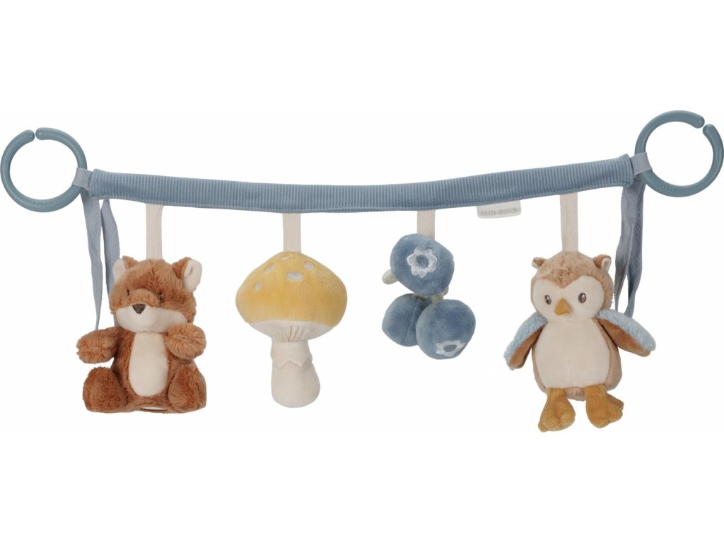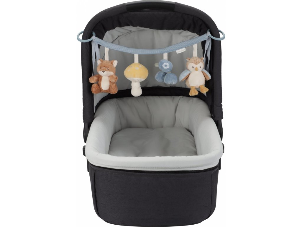 Čtyři zavěšené plyšové hračky v podobě lišky, sovy, houbičky a borůvek zabaví vaše miminko na cestách v autosedačce či kočárku. Jednotlivé hračky při zkoumání dětskými ručičkami chrastí a šustí. Hračky stimulují koordinaci ruka / oko dítěte.