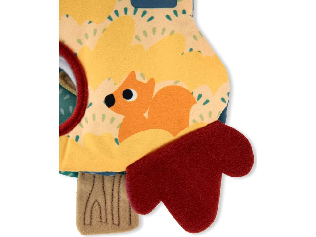 Podzim: Zahrnuje 2 veverky v kresbě a chlopeň listů, přes které lze vykouknout.
