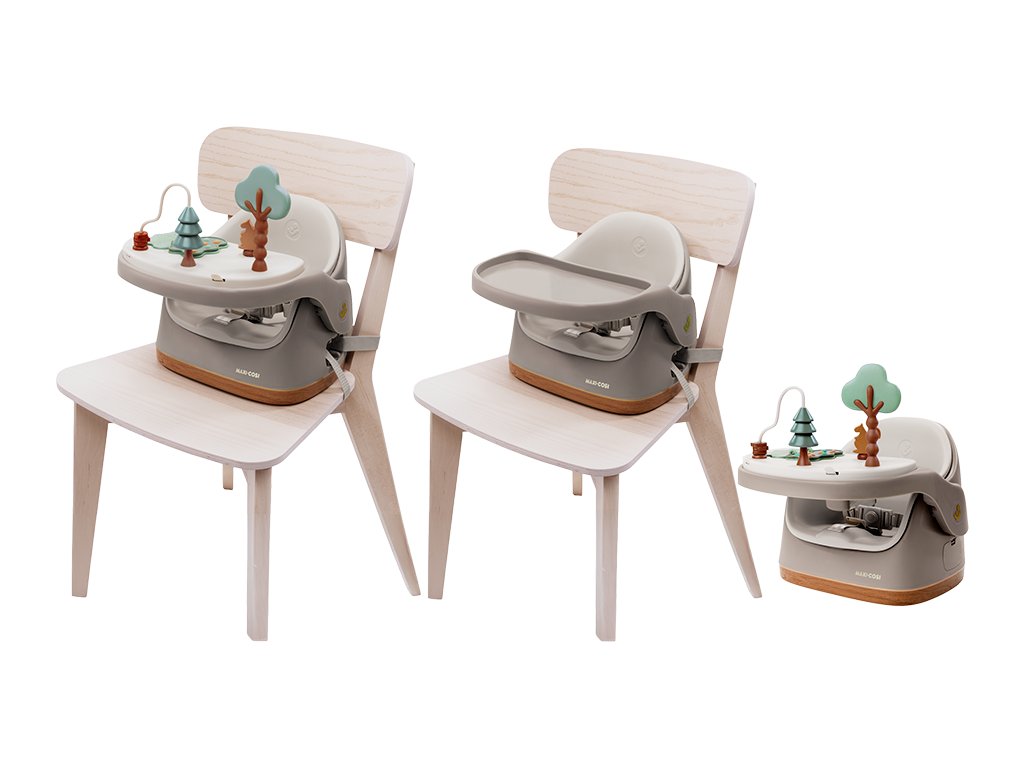 Od hraní po krmení – Maxi-Cosi Jay Plus je kompaktní a zároveň prostorná židlička, která roste s vaším dítětem. Díky chytré konstrukci ji lze používat jako samostatnou židličku, podsedák na židli nebo hrací místo s přiloženým hracím pultíkem s aktivitami.