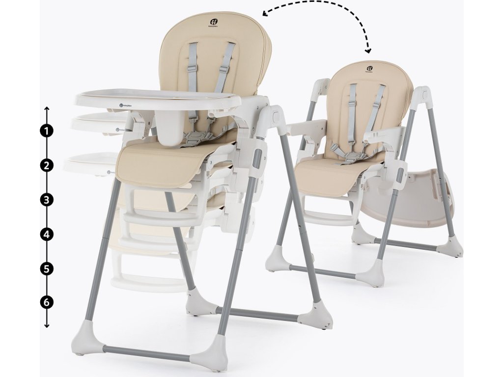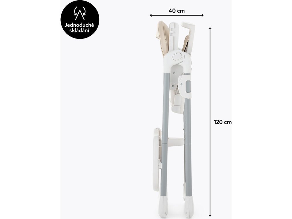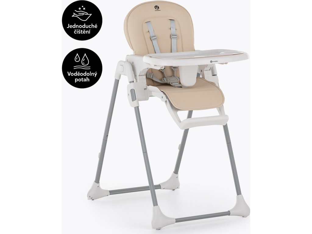 Péče o životní prostředí, kterou jsme při tvorbě této židle zohlednili, nezastínila nejdůležitější aspekty výrobku – byl totiž navržen tak, aby co nejbezpečněji zlepšil každodenní život děťátka i rodičů. Židle má všechny funkce, které usnadňují každodenní krmení: lze ji snadno sundat a vyčistit, má 5-bodové bezpečnostní pásy, nastavitelnou opěrku zad, nastavitelnou opěrku nohou, nastavitelnou výšku, dvě polohy pro podnos s horní částí, kterou lze mýt v myčce nádobí. Stabilní konstrukce židle zajistí bezpečnost vašeho dítěte bez ohledu na to, jak je aktivní nebo pohyblivé. Vysoce kvalitní provedení, promyšlená konstrukce, moderní a originální design a kompaktní skládání jsou nadčasové vlastnosti, které zajistí pohodlí pro vaše dítě od okamžiku, kdy se naučí sedět.