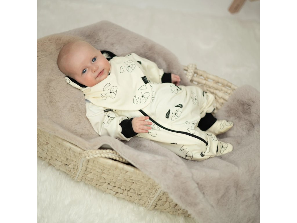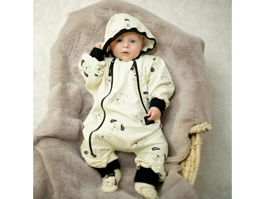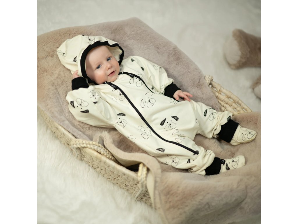- Volný střih overalu pro volný pohyb při objevování světa. Materiál je jedinečně měkký a pružný okolo zápěstí a nožiček. Pružné a dlouhé náplety podrží délku rukávů i nohavic a prodlouží velikost.