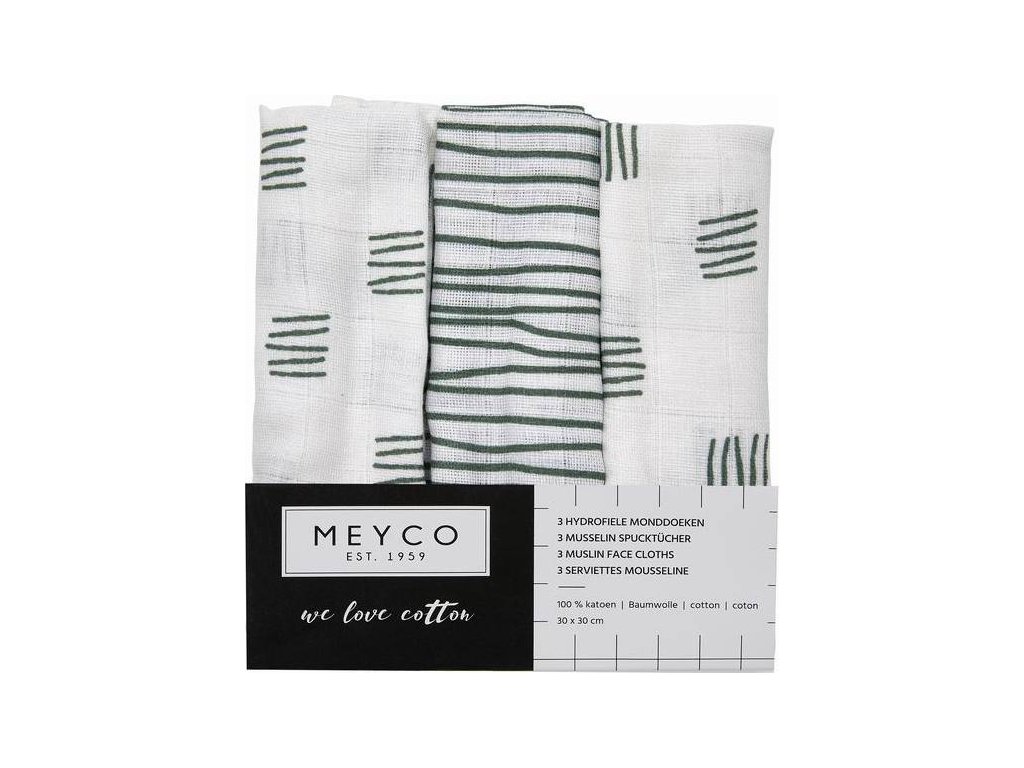 Materiál: 100% bavlna Balení obsahuje 3 ks. Rozměr: 30 x 30 cm