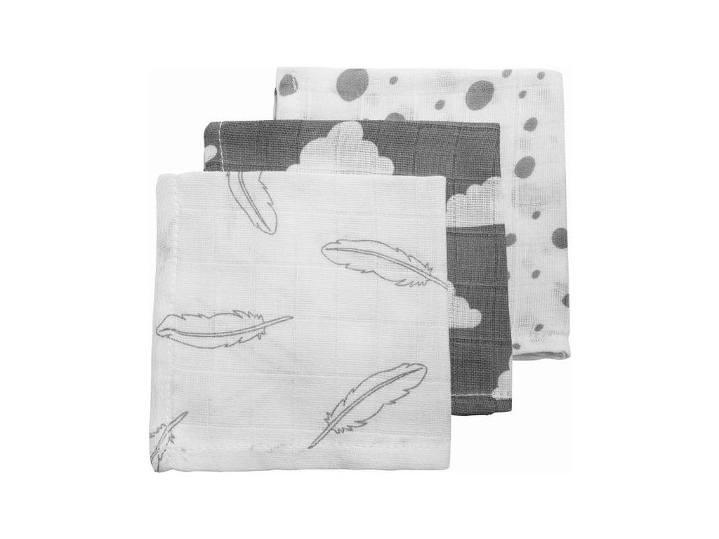 Plena-žínka Feathers-clouds-dots grey/white