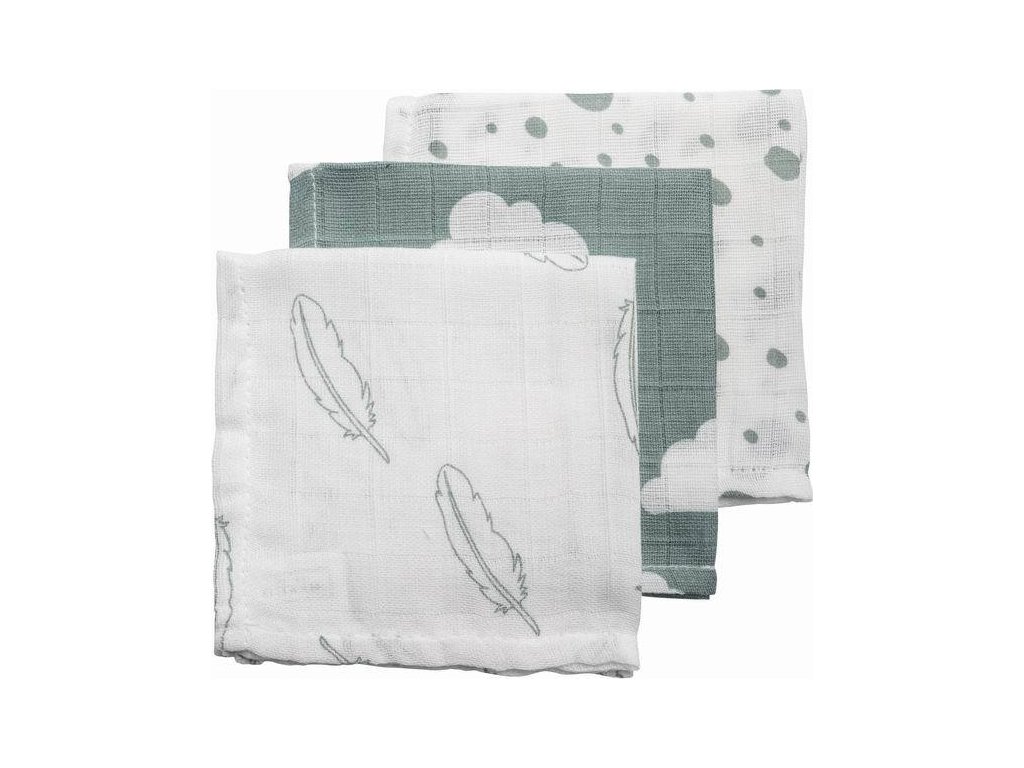 Plena-žínka Feathers-clouds-dots stone green/white
