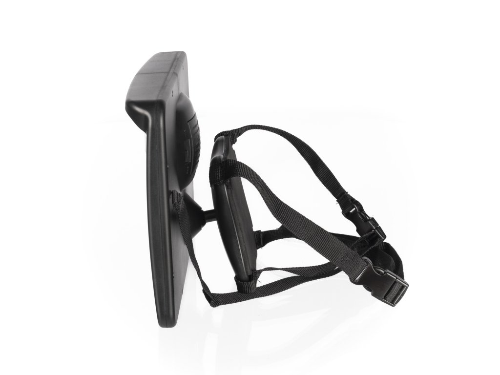 jednoduše se upevňuje na opěrku hlavy pomocí nastavitelných pásů. Je vyrobeno z