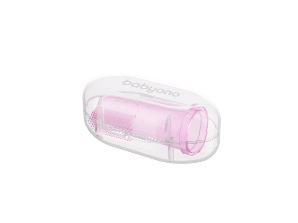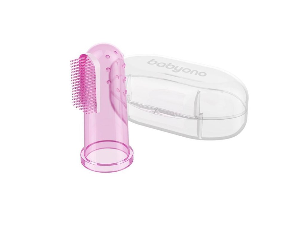BABYONO BABYONO Kartáček zubní prstový s pouzdrem růžový