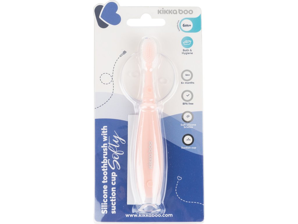 KikkaBoo Silikonový kartáček s přísavkou Softy Pink